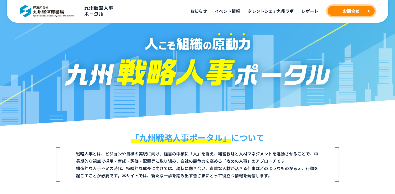 「九州戦略人事ポータル」では必要な人材像の明確化や職場環境改善等を通じた多様な人材の確保・活用を後押しするため、人材戦略の検討・策定・実行に資するセミナーやジョブマッチング等により一気通貫の支援を行います。